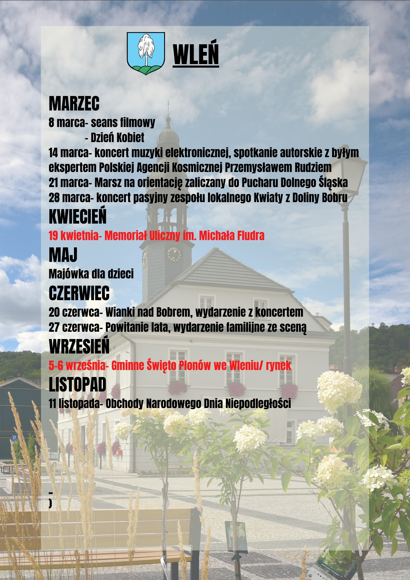Przez miasteczko przebiegają dwa szlaki turystyczne: zielony – Szlak Zamków Piastowskich, żółty – Szlak Wygasłych Wulkanów. Bogata przeszłość historyczna oraz walory przyrodnicze sprawiły, że obszar gminy jest doskonałym miejscem do uprawiania turystyki zmotoryzowanej, rowerowej, pieszej oraz sportów wodnych. Przez Wleń przebiega również trasa rowerowa „Dolina Bobru”